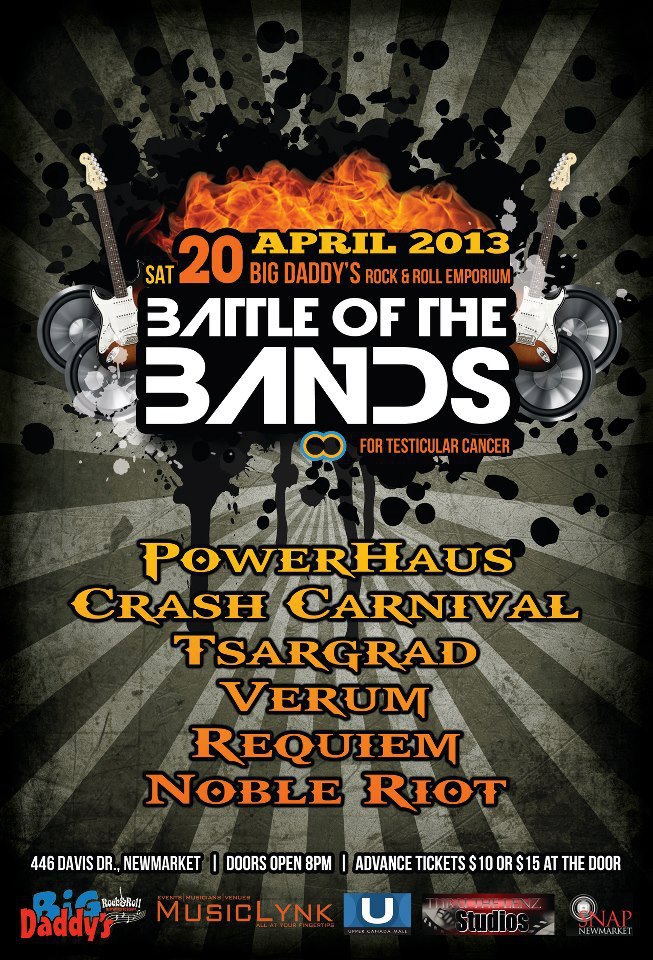Newmarket April 20th- Battle of the bands for testicular cancer
